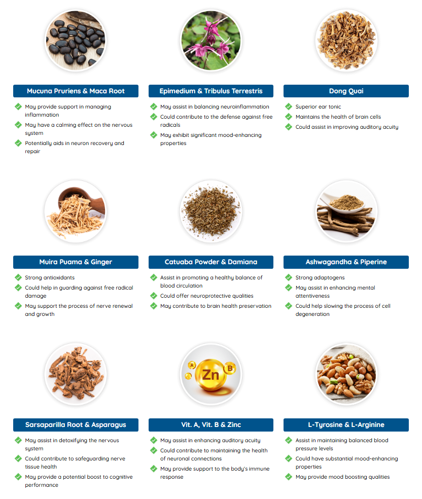 By supporting nerve communication and auditory circulation, the formula may ease tinnitus-like symptoms over time.